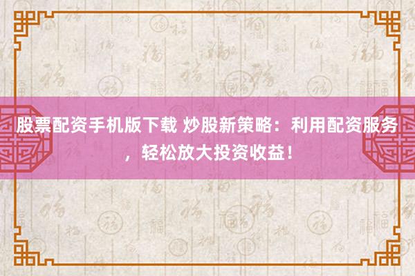 在股市中股票配资手机版下载,投资者总是在寻找能够放大收益的方法。配资服务,作为一种创新的金融服务模式,近年来越来越受到投资者的关注和青睐。通过配资,投资者可以在自有资金的基础上,获得额外的资金支持,从而放大投资规模,进而有望获取更高的投资收益。
